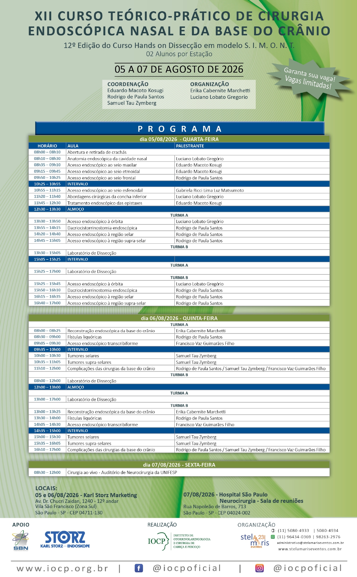 Você está aqui : Home / Educação Continuada / XI CURSO TEÓRICO-PRÁTICO DE CIRURGIA ENDOSCÓPICA NASAL E DA BASE DO CRÂNIO...
